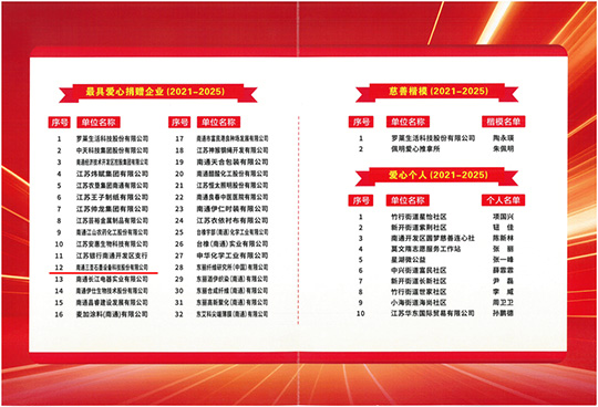 日前,三圣石墨榮獲南通開發(fā)區(qū)慈善總會“最具愛心捐贈企業(yè)”(2021-2025)光榮稱號,這使得我司慈善公益事業(yè)再添一項殊榮。