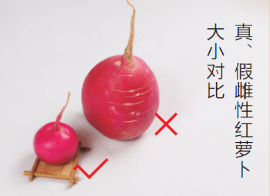 真的東北雌性紅蘿卜,每個重量只有2兩至5兩之間,而假冒的東北雌性紅蘿卜,一般都在半斤以上。目前網(wǎng)絡(luò)上出現(xiàn)大量的假冒雌性紅蘿卜均為農(nóng)貿(mào)市場上幾角錢一斤的普通菜蘿卜,并且根本無法保證沒有農(nóng)藥和化肥的殘留。