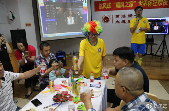2018年6月22日晚,60余位痛風(fēng)患者及家屬一起歡聚沈陽抗風(fēng)竤中醫(yī)門診二樓多功能廳,和抗風(fēng)竤的醫(yī)生、護(hù)士、康復(fù)指導(dǎo)師們,一起度過了個(gè)難忘的世界杯之夜。