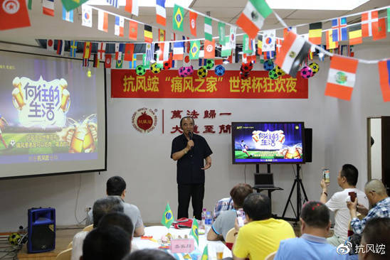 此次舉辦抗風(fēng)竤“痛風(fēng)之家”世界杯狂歡之夜活動(dòng)就是借俄羅斯世界杯之機(jī),將“綠色安全、尊重自然”的防痛風(fēng)、治痛風(fēng)理念傳播到廣大風(fēng)友中去,幫其提高如何正確治療痛風(fēng)的意識(shí),讓風(fēng)友們?cè)?ldquo;吃喝玩樂中”趕走病痛,樂享人生。