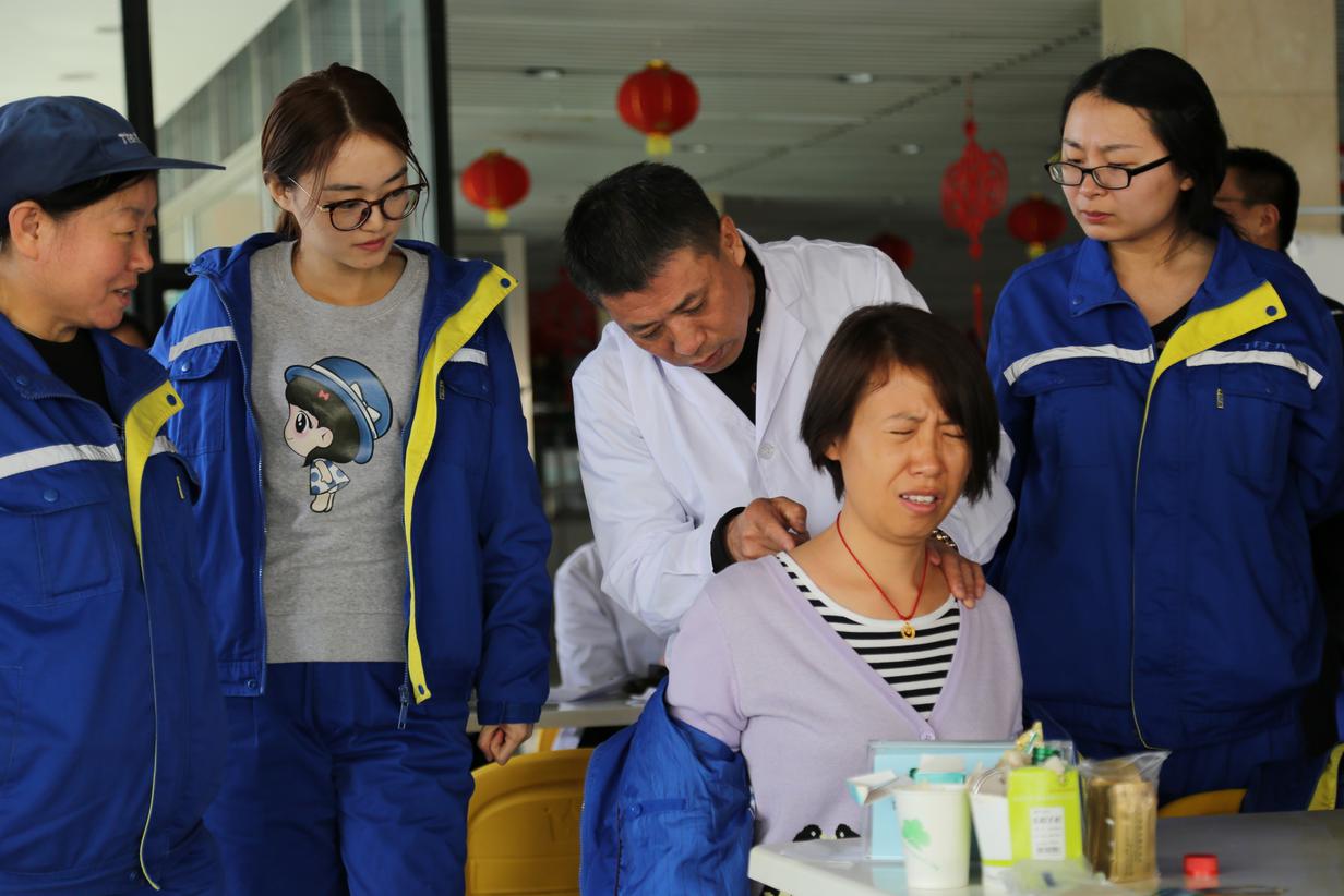 義診從上班時間開始,到下午2:30仍有很多職工在排隊等待池老師的針灸療法